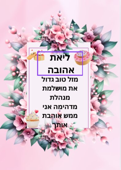 ליאתוש היקרה שלנו. אוקיי דבר ראשון זה יום הולדת שמח גדול והדבר הכי חשוב ברכה. לליאת המנהלת האלופה:) אני מאחלת לך בריאות חיים טובים מתנות ושתישארי כמו שאת! יפה מושלמת איחודית אבל עכשיו מספיק עם המילים הפשוטות ובוא נגיע לאמיתיות ליאת אני רוצה להגיד לך שתדעי שאם משהו כואב לך בלב לא טוב את עצובה ומשהו לא טוב עובר עלייך אז שתדעי שלא משנה מה עם תבקשי עזרה אני יבוא לעזור לך ולא רק אני כל המקמקים שלנו וזה כי את תמיד עוזרת למיקמק ועם אני יגיד לך את האמת את המנהלת האהובה עלי את מקסימה ויש לך לב זהבב אוהבת מלאא ומזל טוב ענקי