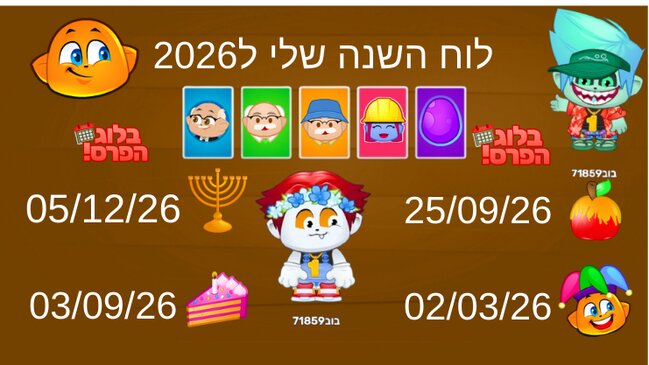 לבלוג הפרס, מיק קאלנדר 2026 לוח השנה שלי. הייי חברים מה נשמע? היום ערכתי את בלוג הפרס ולפי דעתי יצא מהמם! שמתי תאריך של יום ההולדת שלי ושל מועדי ישראל למיניהם מקווה לזכות ובהצלחה לכולם!