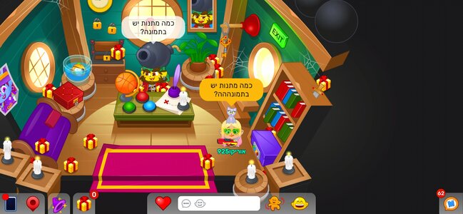 היושיםםם לכולםםם אז אני ובומבו פיזרנו מתנות בקבינה שלו ואיבדנו את הספירההה ואין לי כוח לספוררר אז תעשו את זה בשבילייייי