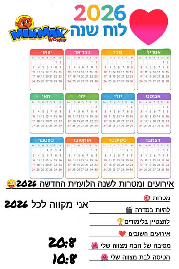 לבלוג הפרס - לוח שנה הלועזית 2026