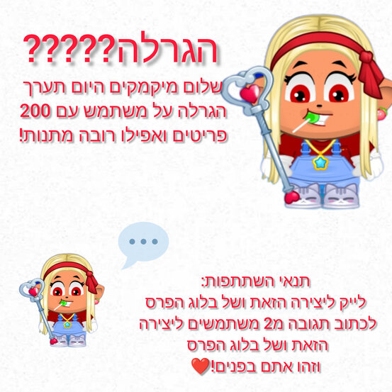 יאווו איזה הגרלה מטורפת עשיתי לייק נירשמתי לקהילה ואני אביא את 55הופ55 ❤❤ |