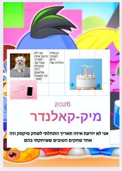 מיק-קאלנדר 2026 לוח השנה שלי !