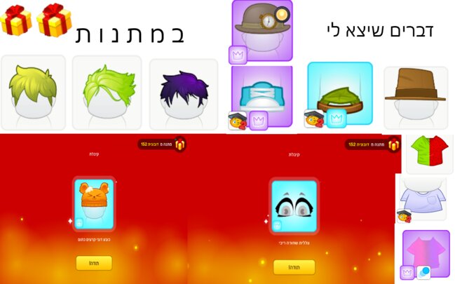 היי קרה לכם פעם שלקחתם מתנה ויצא לכם משו טוב? אז לי בזמן האחרון יש מזל די נאחס במתנות כל הזמן יוצא לי מיקיביט או קסם כנראה בגלל שיש לי כל מה שיכול לצאת ממתנות חח קיצרר שתפו אותי מה אתם קיבלתם ממתנות שהוא שווה ואם אני מחוברת-אל תתבישו לבקש מתנה ;) חח קיצרר מאחלת לכם רק מתנות טובותת יאלוש ביי