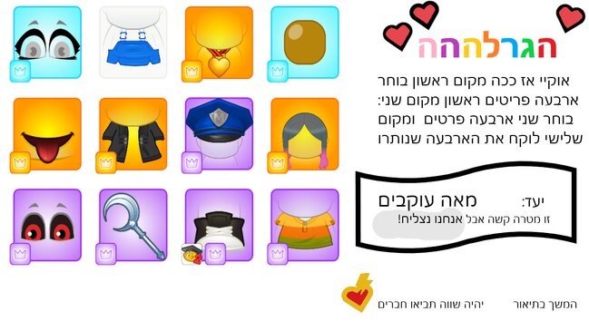 ואוו חבריםם עשיתם את זה בטיליםם מחר בעז"ה אני אתן את תוצאות ההגרלה ואז נקבע שעה גאה ברמותת :) |