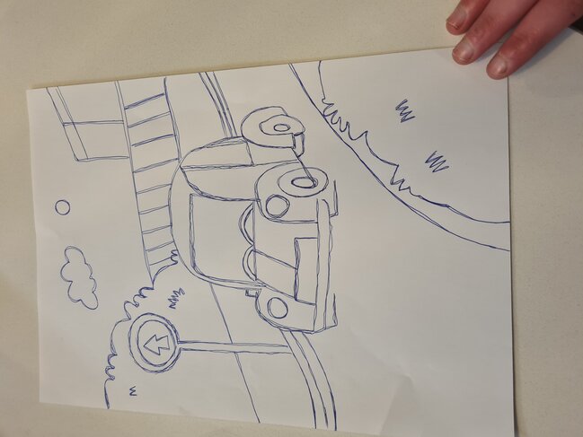אוקייי אזז ציירתי כאן מכונית ותמרור ועצים ובינינים