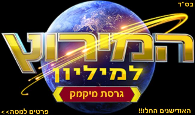 בס"ד היי מיקמקים! קודם כל סליחה שנעלמתי פשוט היה לי הרבה עומס בלימודים.. אוקיי אז ככה: אני, פיקאצ64, דובונית152 פתחנו תחרות מוכרת בגרסת מיקמק: המרוץ למיליון. כללי המשחק: לאחר שיבחרו כמה זוגות למרוץ, כל זוג ינסה להגיע לצמרת - למקום הראשון, אבהל הדרך לשם לא קלה במיוחד, אתגרים קשים ומשימות קשות במיוחד בדרך וגם אנו נדיח זוג בסוף כל קטע. ~איך אוכל לצפות?~ מי שרוצה לצפות יוכל לצפות רק בחלק מהקטעים ולא בכולם, אבל אנחנו נפרסם בקהילה מי הודח, מה היו המשימות וכמובן מי ניצח, מי שירצה לצפות ישלח למיקטוק שלי - יוסי3245 הודעה בקשר לזה. איך מתמודדים לאודישנים? פשוט מאוד, מוצאים זוג שמסכים ורוצה להיות איתך, שולחים כאן הודעה בתגובות שאתם מעוניינים ועם מי וגם במיקטוק ולאט לאט אני והצוות נסמן מי הכי מתאים להשתתף. מה הפרס? מקום ראשון: מיקמק נדיר בחינם לגמרי!! + מתנות (והרבה!!), החלפה שווה בטירוףף!! מקום שני: החלפה שוה בטירוףף + מתנות. אז קדימה, למה אתם מחכים?? תמצאו את הזוג שלכם ושלחו לנו הודעה ובעזרת השם נחזור אליכם בקרוב!! בהצלחה רבה לכולם!!! יוסי3245, פיקאצ64, דובונית152.