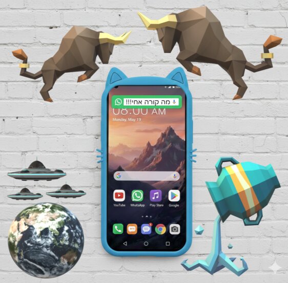 טלפון אם מגן כחול של חתול וגם יש בטלפון