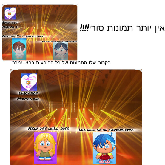 השופטים : הראשונים שכולים לגמר הם השירים: 1. הוריקן 2. מלכת הריקודים 3. New day will rise 4. יוניקרון 5 השקט שבלב הומנום ; השיר האחרון שיעלה לגמר הוא... השיר לוחם!! פייטר!!!!
