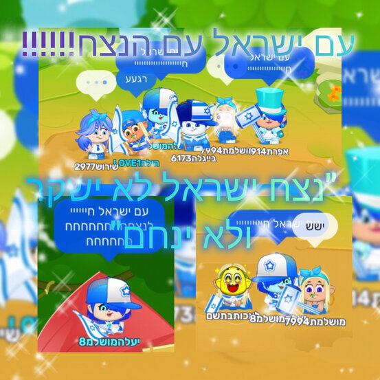 אז בכל אופן רציתי להגיד לכולכם עם ישראל הוא עם הנצח! אנחנו עדין לא ניצחנו נכון. אבל אנחנו לא רחוקים מיזה. עם ישראל חיייי וקיים לנצחחח כמו שכתוב בשמואל א' פסוק ט"ו: "נצח ישראל לא ישקר ולא ינחם"