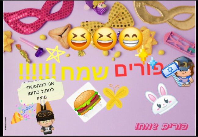 שלום לכל המיקמקים האהובים! מקווה שאתם נהנים בפורים, אז הנה לפניכם הציור לבלוג הפרס החדש, כמו שרואים כאן תחפושת חתול כתום, דמות מיקמק, ועוד פריטים ורעשנים לפורים. מקווה שאהבתם! שלכם, אלרואי