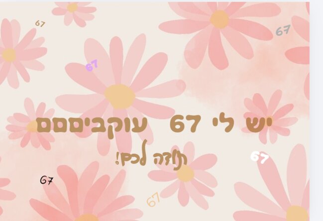 בזכותכם יש לי 67 עוקבים לא הייתי מוכנה לזה אבל גם בזכותכם יהיה הגרלה או חלוקה קטנה :) (בקרוב)