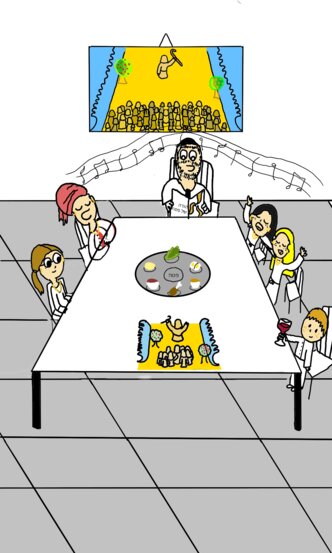 היי, ציירתי לתחרות של דיגיי ויוסי את המשפחה שלי יושבת בשולחן החג ושרה שירים אתם בטח תוהים מי אלה שתי הילדות האלה בצד השולחן, אגלה לכם שאלו אני ורון! (יוסי3245)אני הבלונדינית, (היא עם השיער השחור המעלףףף שלה) לא היה מספיק מקום לצייר את כל יושבי שולחן החג (זה המון) אז ציירתי רק חלק מהמשפחה שלי ואותך , מחלי לי! בכל אופן, זו היצירה שלי לתחרות ו זהו