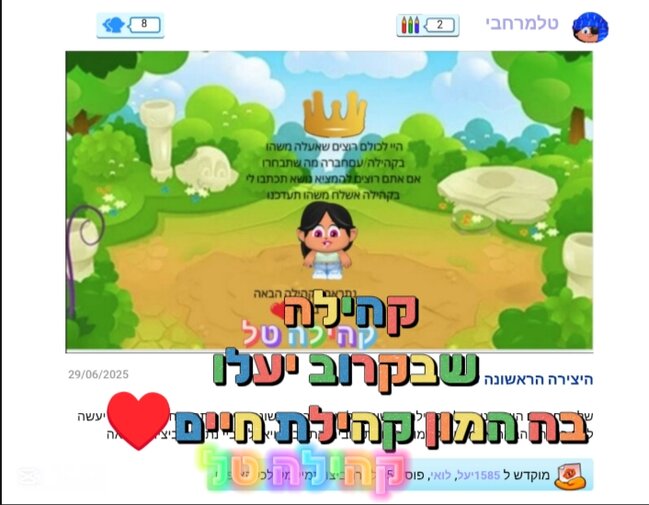 זה קהילה של חברה של במציאות היא ממש מושלמת! היא לא כולכך מעלה בקהילה אבללל ויש פה אבל חבר'ה בקרוב היא תיהיה פעילה ותעלה המון דברים כיפים! יש עוד קהילה של אחותה "רטד121" קהילה מושלמת באותו מידה זה היה "#לתחרות של חמודה86765#"