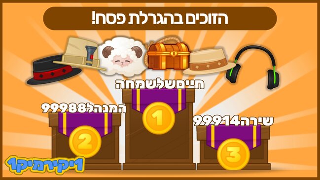 ובמקום השני.... המנהל99988!! מזל טוב! אתה תבחר 2 פריטים לאחר שמקום ראשון בחר קודם.