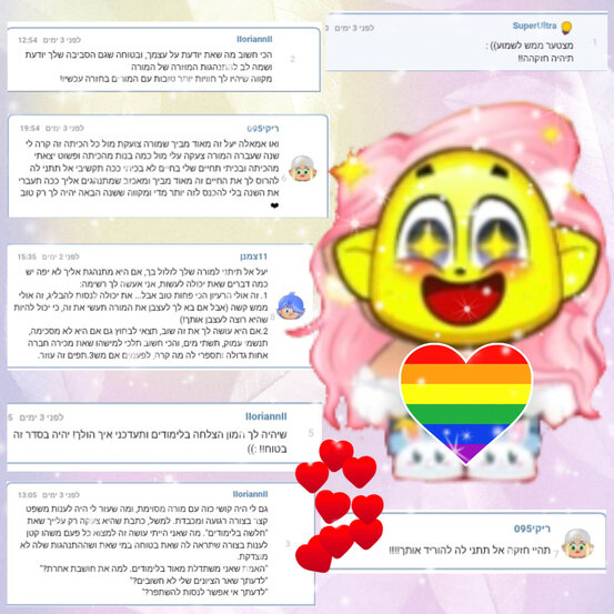 זה היה כל כך נהדר ליראות כמה אכפת לכם ממני. שאתם מקדישים זמן ליקרוא מה שכתבתי ואז גם ליכתוב תגובות זה באמת ממ שעוזר.