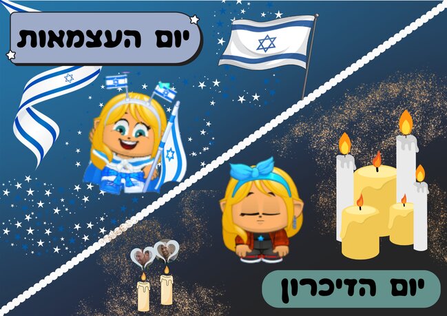היי אנשים. מחר יום הזיכרון ומיד אחרי זה יום העצמאות ביום הזיכרון אנחנו קוראים תהילים על החיילים שנפלו בקרבות ביום העצמאות אנחנו שמחים שזכינו במדינה משלנו לא יודעת מה איתכם אבל מי שגדל על השיר "זה לא כל כך פשוט להיות כאן ילד" מכיר את המשפט "אנחנו שלנו כאב ושמחה" כי אנחנו מתאבלים על מה שאיבדנו ושמחים על מה שקיבלנו אני רוצה שזה יהיה ככב תמיד להתאבל על הרע אבל לדעת גם לשמוע על הטוב.