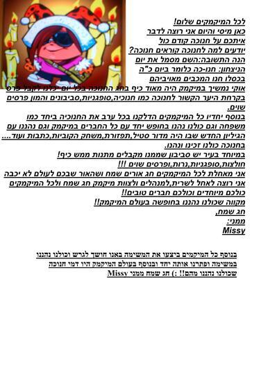 כפרוני עלייה אין עלייה בחיים אני לא אשכח את היפייופה הזאת את חברה טובה ואת ממש עוזרת לי ולכולנו טוב מאוד שתלית את המודעה הזאת כי באתי להגיד לך מזל טוב ביום שבת יש לה יום הולדת מזל טובי ! |