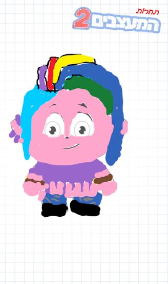 יצירה ראשונה לתחרות הסבר על היצירה: השיער בעצם הוא שיער של פינקי אבל אני אוהבת צבע לא הכול אותו הצבע אז ניסיתי לחשוב על משהו צבעוני ואז נכנסתי ליוטיוב ובאחד הסרטונים הייתה קשת! אמרתי זהו, אני עושה קשת חולצה היא חולצת בטן סגולה עם ציור של קשת בענן החוטים שיורדים ממנה הם סמל של אחדות! לא כולם אותו הדבר אבל כלום צריכים להיות חברים! ג'ינס קרעים החיים הם כמו ג'ינס עם קרעים,,, לכל אחד קורה משהו שכאילו קורע אותו לכמה שמן אבל אפשר לתפור אותו עגילים הוספתי כי זה מוסיף הרבה לעין וזה יפה! ונעלים לסיום חלקות בעזרת ה' שתיהיה שנה חלקה!