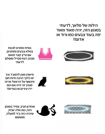 פריטים חדשים שחשבתי עליהם במהלך השבת, אני יותר עפתי על ההילות, נראה לי זה יהיה ממש מגניב אם זה יהיה זוהר נגיד או משהו כזה