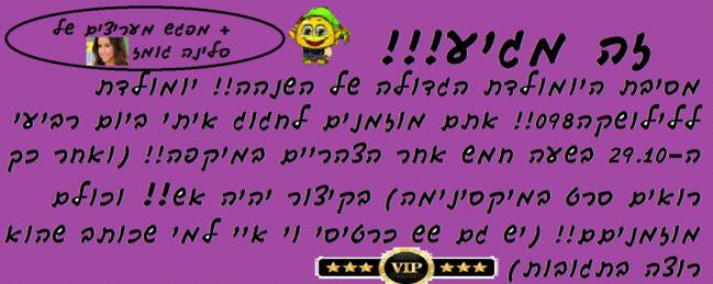 אני באה המון מזל טוב תשמרי לי כרטיס וי איי |