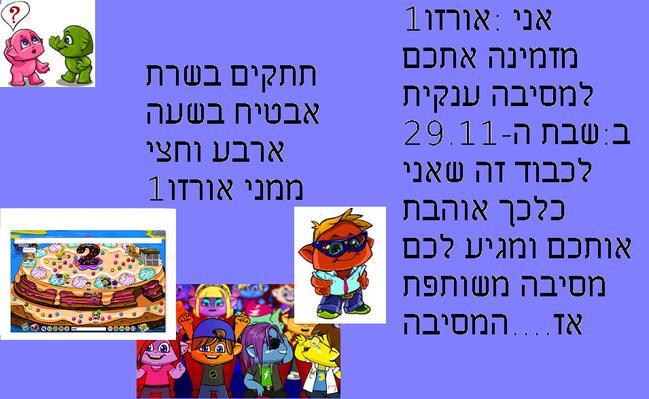 היי חברים הכנתי מסיבה ביום שבת לכבודכם