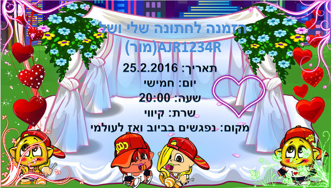 ברור שאני יגיע אתם ותהיו זוג השנה ותהיה חתונה חלומית !! :) |