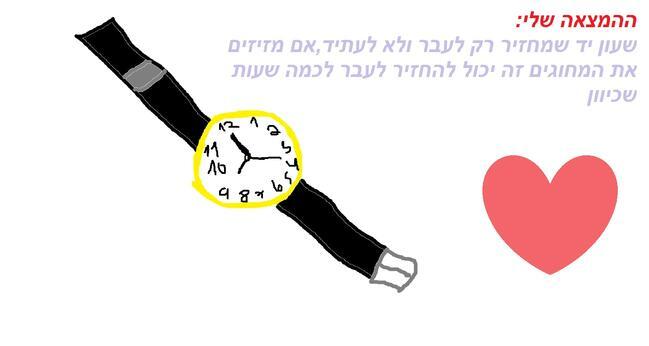 היי כולם ההמצאה שלי היא שעון שלוקח אותנו לעבר אבל לא לעתיד. כל מי שירצה לחזור לעבר ולתקן טעויות יכוון את המחוגים לשעה וליום שזה קרה ולתקן. מקווה לזכות! ושיתגשם ההמצאה!