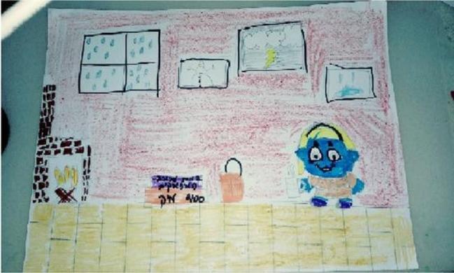 המיקמק שלי שותה תה ירוק בכוס ומתחממת ולובשת את המיק פ'יגמה על הקיר תמונות וחלון שיורד גשם