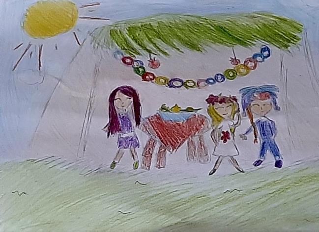 היי לכולם ציירת ציור שלי ושל חברותי מושקעהיום ומיעק1001 בסוכה מקווה לנצח השקעתי בזה שעתיים חחח ❤