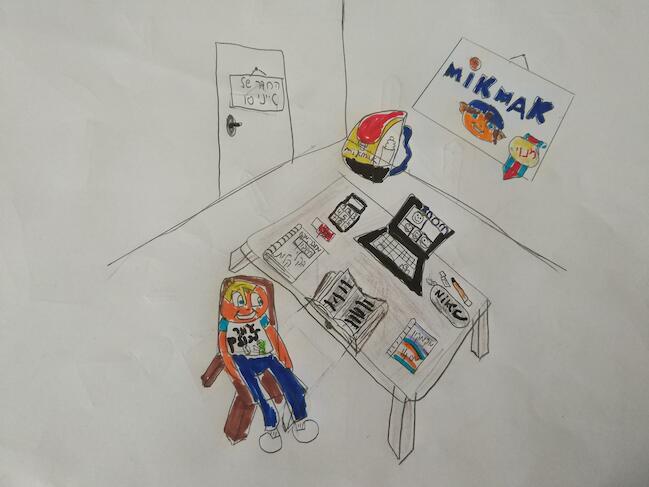 עשיתי ציור של המיקמק שלי לומד מתמטיקה עם חבריו בזום