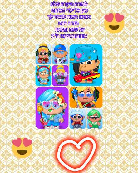 מושלם!! זה מזכיר מאוד את היצירה שלי חחח אבל שלך מושלם!! אהבתי מאוד שמת מלא תמונת של ילדים בלבוש שונה זה מושלם!!! בהצלחה או וסליחה שאנ אומרת ממש סליחה יש לך טעות במילה מיק שימה כתבת במילה נפרדת במקום במילה אחת אבל לא נורא (= בהצלחה!!! |