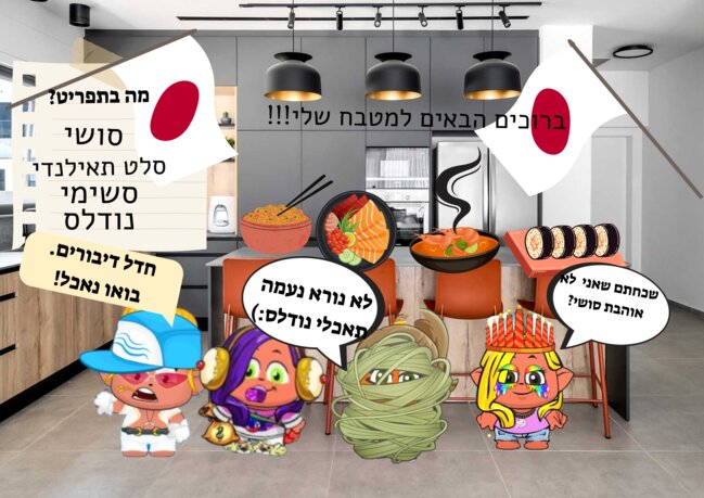 אזזז מה נשמעע? חנונים שליייי וואווו אני השקעתי על זה הרבה באמת ורואים שם את מנוחי נעמה ושורה, (הלא הם מכיתתי :) ) אוכלים ארוחת בוקר בסגנון יפני (זה יותר טוב לאכול זאת בצהריים או בערב.. טיפ שלי מנסיון :] ) קיצקצ בהצלחה לכולם וסליחה ששלחתי באיחור בבי אוהבותתתתת