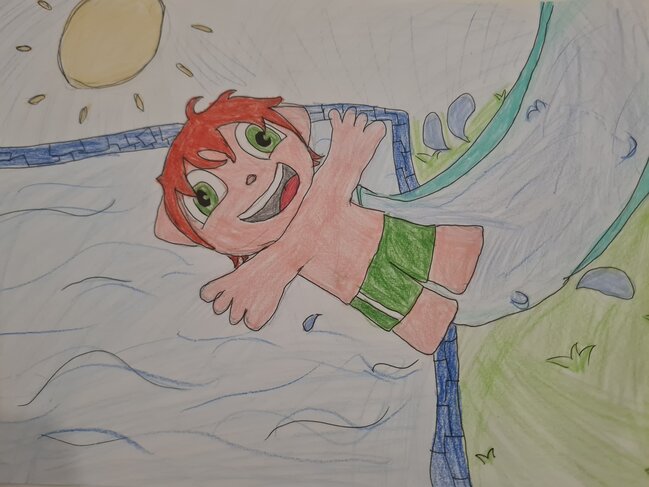 אוקי אז הינה ציור למירשימה החודשית של ילד במגלשת מים לציור קורים מגחשת האקסטרים שלי המגלשה מסתימת בבריכה השקעתי הרבה אשמח ליזכות
