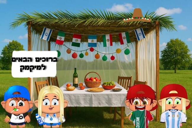ערכתי אותם בסוכה עם שלט ברוכים הבאים למיקמק!