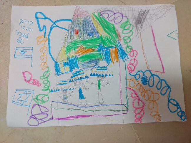 ציירתי סוכה ואנשים עם סומבררו ודגלי ישראל
