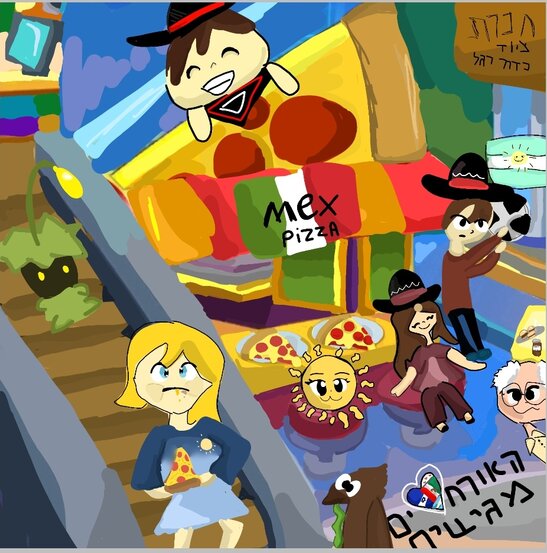 היי כולם היום בחרתי לשתף אותכם ביצירת מיקשימה שלי אז ממ נתחיל בזה שהפיצריה בעיר עכשיו מקסי פיצה והבנק חנות כדורגל ארגנטינה!!!! אז אני וחברים מקסיקנים וארגנטינים שלי בחרנו ללכת לפיצה וראינו כמה שינויים... זלמן מחלק אלפחורס לכולםםם אתרוגון מיצטרף לחגיגה ומי שם לב לשמש טלנשר מדגלים ארגנטינה ומקסיקו?? החבר מארגנטינה שלי ממש התלהב מהפיצה והמקסיקני... רצה לחקור את המקום יותר חחח ואז פגשנו ילד קטן דובב שטיפס על הפיצה חשוב לי לציין שציירתי הכל ללא העתק או משהו טוב מקווה ליזכות ביי ביי