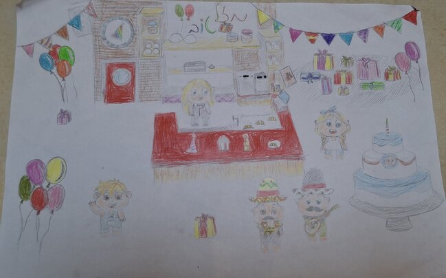 ציירתי את מסיבת יום ההולדת המושלמת בעני חברים מנגנים שבאו מארגנטינה ומקסיקו בלונים וקישוטים בכלל צבעי הקשת ים של מתנותת (כי מי לא אוהב מתנות;-) וכמובן, העוגה.... אחד הדברים הכי חשובים ביום הולדת גדולה טעימה יפה ומתוקה שתמידדד רק משפרת את האווירה על העוגה ציירתי את הסמל של מיקמק שכמובן שאכיל
