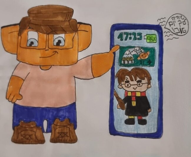 ציירתי את הדמות שלי עם טלפון, בטלפון ציירתי את הארי פוטר כי זה דמות שאני מאוד אוהב והיא משמחת אותי.