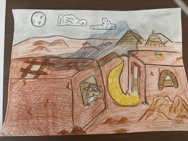 בציור אפשר לראות את מכת הבכורות. יש בתים הרוסים ודמות מיקמק מלוכלכת עם בוץ מאחוריה מופעים פירמידות אחת בתהליך בנייה, במרכז הציור תוכלו לראות את רוח אלוהים חולפת על הבתים ובבית לידה דם מרוח על הדלת כמו שבקש משה מהיהודים לעשות כמובן שזה קרה בלילה ולכן תראו ירח מאחור. זה חלק מעוד משמעותי וחשוב בפסח בעניי ולכן ציירתי אותו. מקווה לזכות באהבה חבצלתיניו. |
