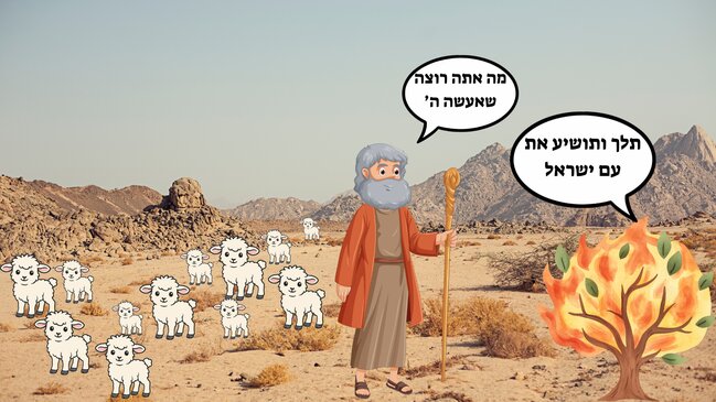 ציירתי את משה מדבר לשנה הבוער ליד הצאן שלו