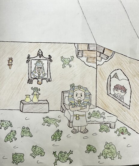 היי חברים אני עוד פעם מעלה יצרה והפעם של פסח איך אני אוהב את פסח ליל הסדר בדיקת חמץ… בקיצור העלתי יצרה שמספרת על מכת צפרדע ״ויט אהרון את ידו על מימי מצרים ותעל הצפרדע על ארץ מצרים״ אהרון היכה על היאור והנה הופיע צפרדע ענקית מעל המים נעשו המצרים להרוג אותה. היכן אותה ובכול הכה יצא נחילים נחילים של צפרדעים . התפשטו בכול ארץ מצרים מיטות ארונות אוכל…