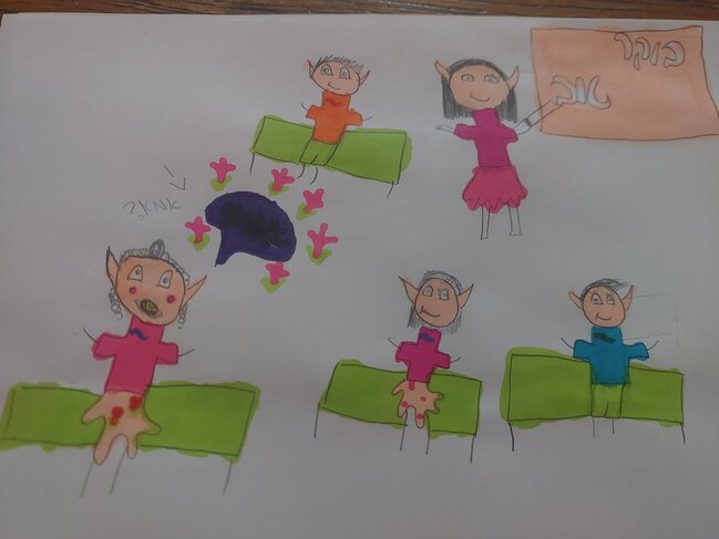 אז מה ציירתי? תלמידים, מורה ו"אותי" שקוראת למורה אמא..