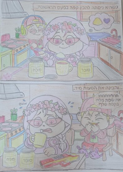 ביצירה שלי אתם יכולים לראות את המיקמקית שלי בבוקר, מנסה להכין לעצמה כוס קפה מפנקת.