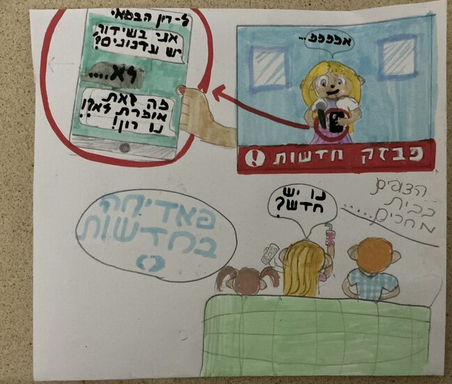 הייי, בעצם ציירתי תקרית שהבמאי של החדשות (רון) לא יודע שום דבר על עדכונים חדשים ובעצם לקריינית אין מה להגיד והיא ממש נבוכה והיא בשידור חי