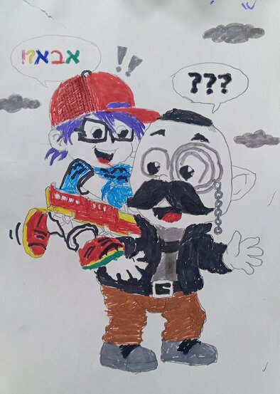 מבוס על סיפור אמיתי: ציירתי אןתי כשראיתי מאחורה ברחוב מישהו שדומה לאבא שלי, קפצתי עליו ואז גילתי את זה- זה היה איש זר. הוא הביט בי במבט מוזר וזה היה מביך ברמות.