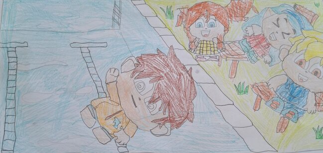 צירתי דמות מיקמק שוחה בבריכה ובלי שהוא שם לב הוא ניתקע בקיר של הבריכה וכולם צוחקים עליו מבוסס על סיפור אמיתי שקרה לי פעם שניתקעתי בקיר של הבריכה