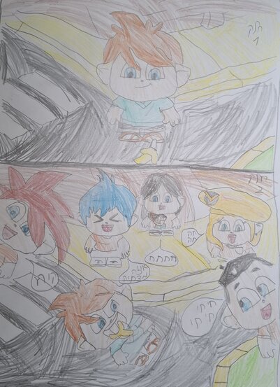 צירתי דמות מיקמק הולכת ברחוב ואז מחליקה על בננה והבננה עפה באויר ונוחתת ישר לפה שלו וכולם צוחקים עליו (נסו לנחש מי הדמויות שצוחקות עליו)