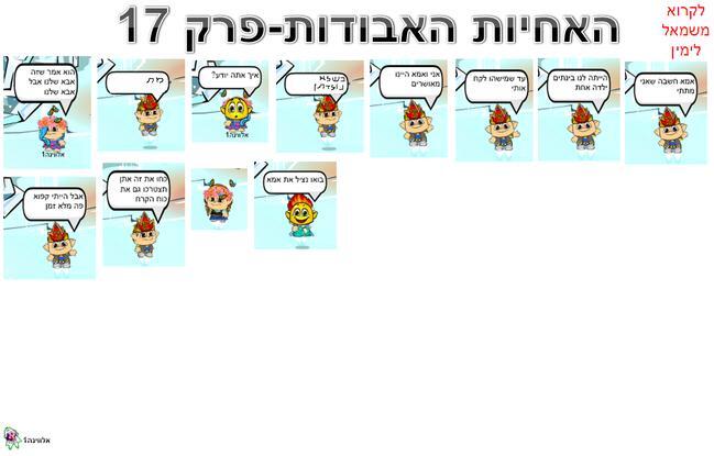 היי(: אז זה פרק 17 מקווה שאהבתם!!! שאלות: 1.האם הם יצילו את אמא שלהם? הודעות: 1. הפרק הבא יהיה הפרק לפני האחרון. אל תדאגו תהייה עוד עונה. 2.שאלות תשובות,אתם שואלים וספוגי עונה והמנצחים בתחרות, סליחה שאני מתעכבת פשוט אין כבר חופש ואני אנסה לעשות ביום השבת הקרוב וזה יעלה ביום ראשון הבא. ביי(: