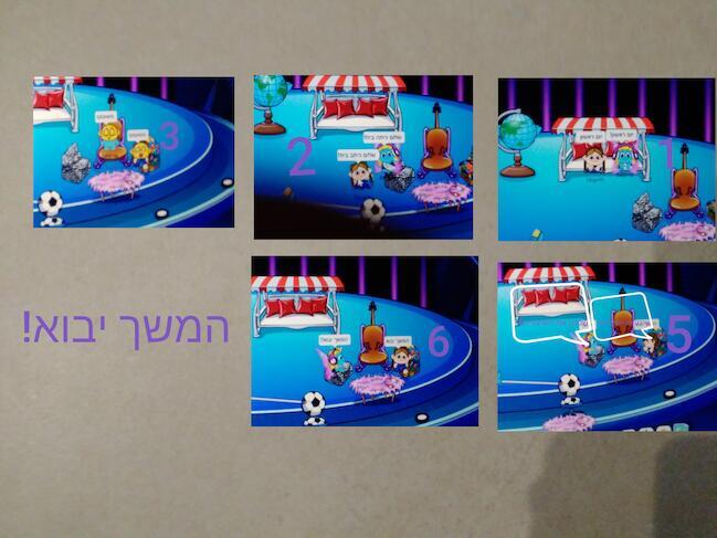 היי מיקמקים אני רוצה להקריא לכם מה כתוב בכל תמונה:) תמונה:1. היום הראשון! תמונה:2. שלום כיתה בית! תמונה: שלוש: משעמם לי. תמונה:4. שחכנו את השיעורים! זאת אומרת שהיה מפגש זום ועשינו משו בחוברת ואמרו לנו להביא ושחכנו. תמונה:5. המשך יבוא! תמונה:4. |