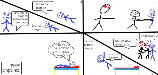 האאא מזל שזה היה רק חלום, אבל עכשיו ינון לא יכול להירדם מעניין מה הוא יעשה בפרק הבא ממש יפה אהבתי את הפרק! |
